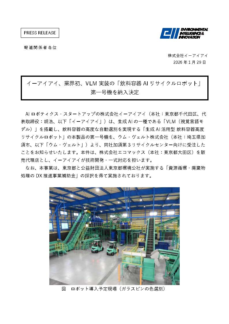 開発した業飲料容器の高度な自動選別を実現する「生成AI活用型 飲料容器高度リサイクルロボット」の