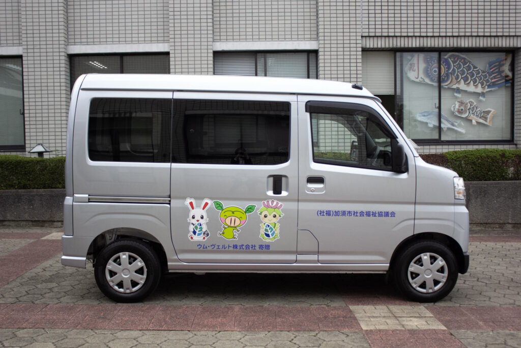 車椅子のまま乗車できる、福祉車両を1台寄贈いたしました。